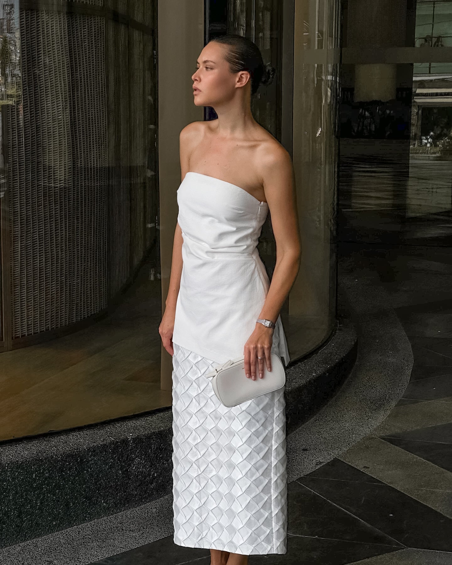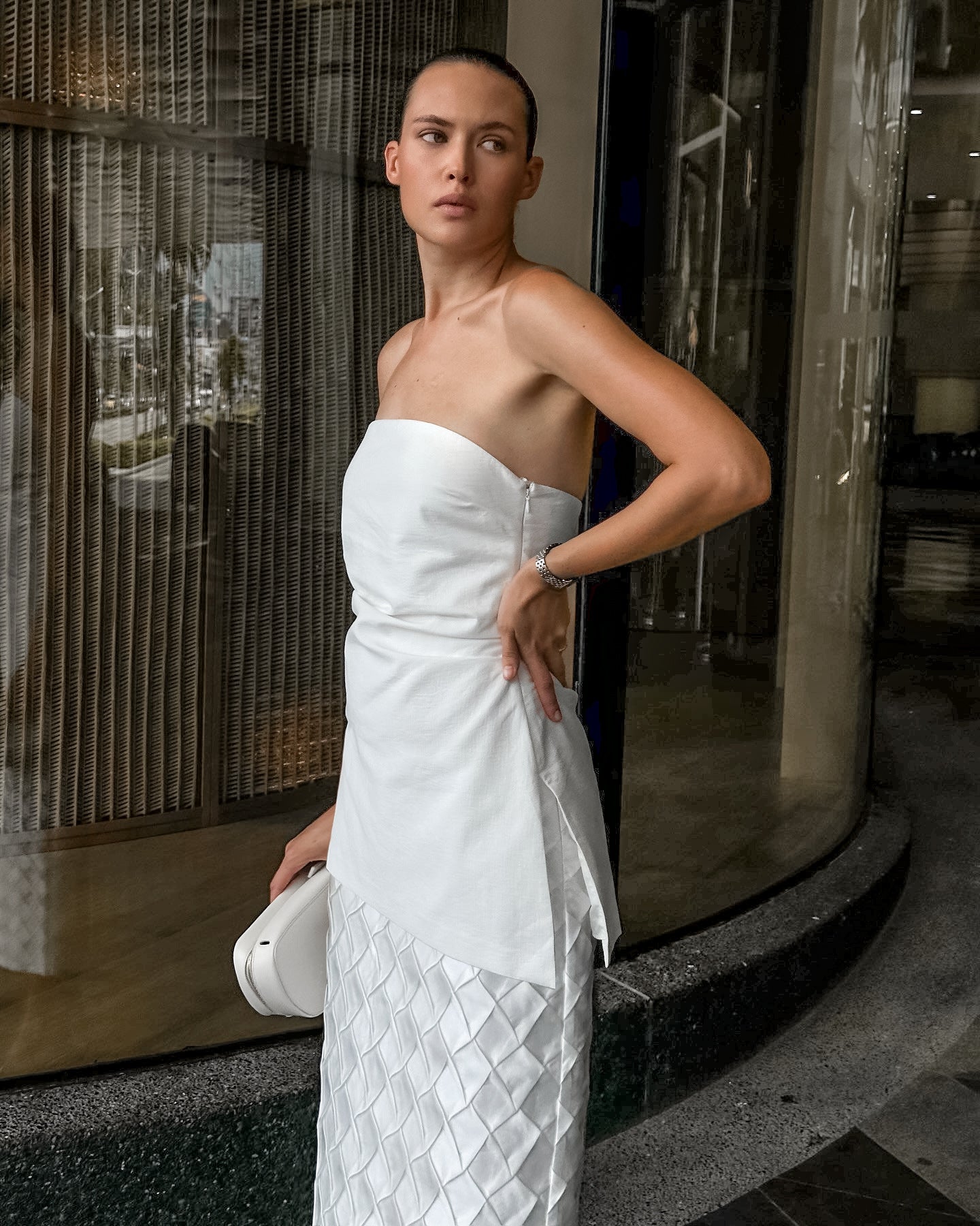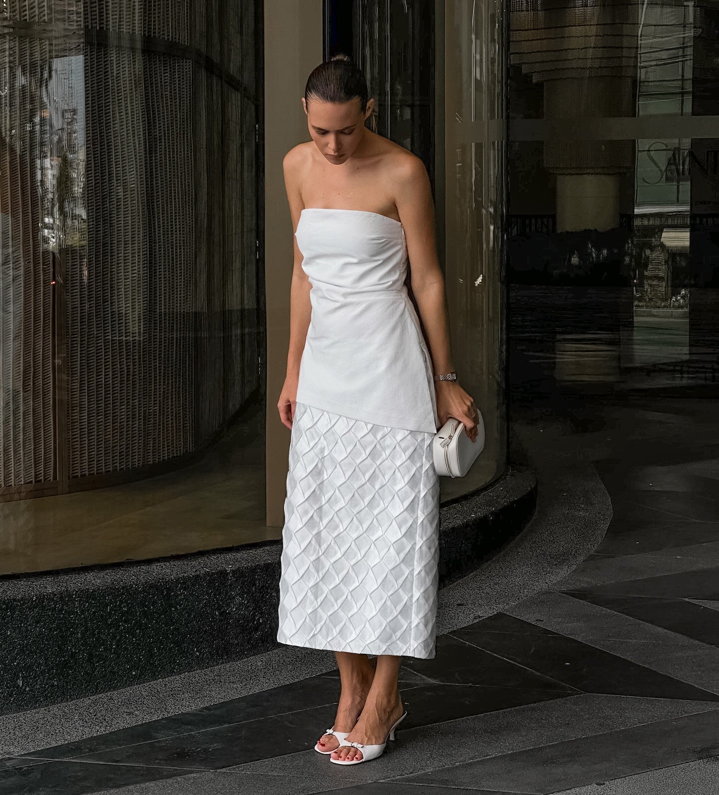 Design: Tube top with an irregular hem and no back detail, featuring a modern, fashion forward silhouette.