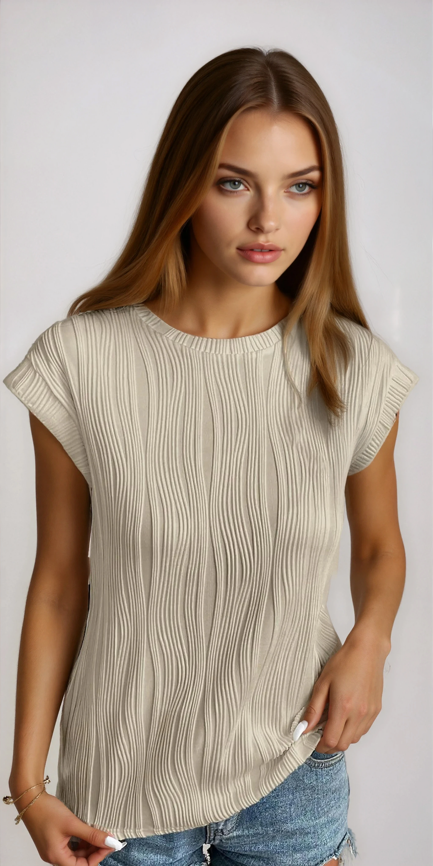 Design: A flattering short sleeve shirt, featuring a subtle embossed pattern for added texture and style.